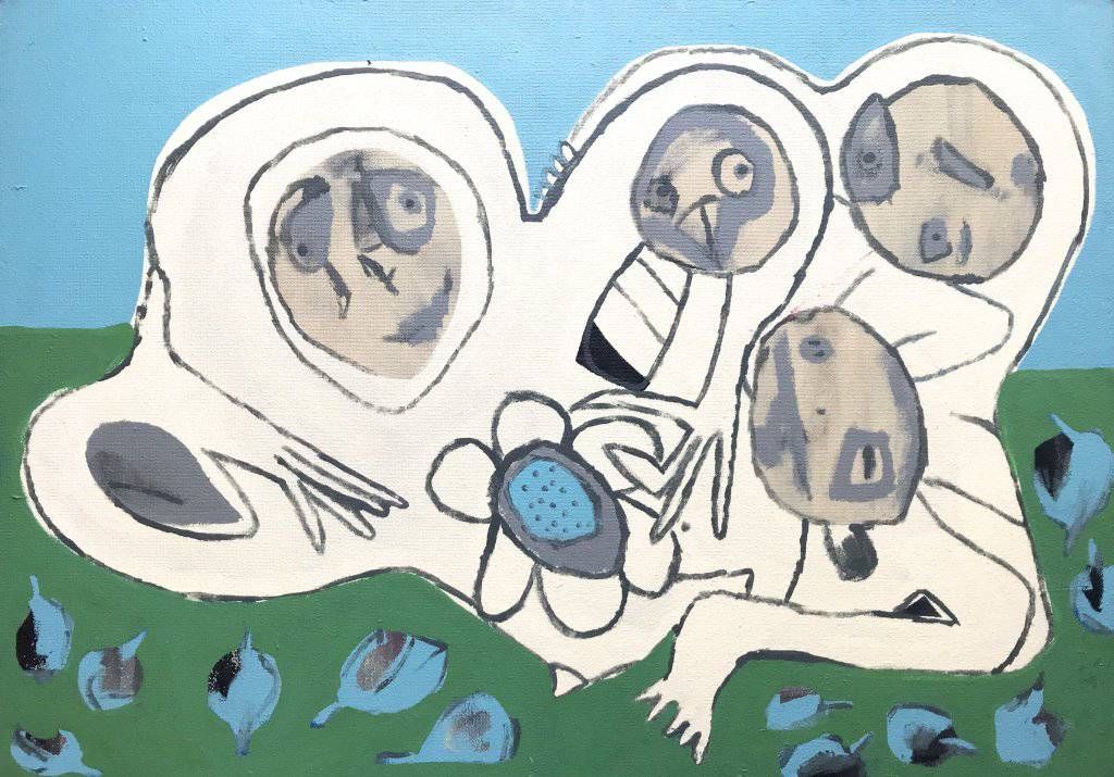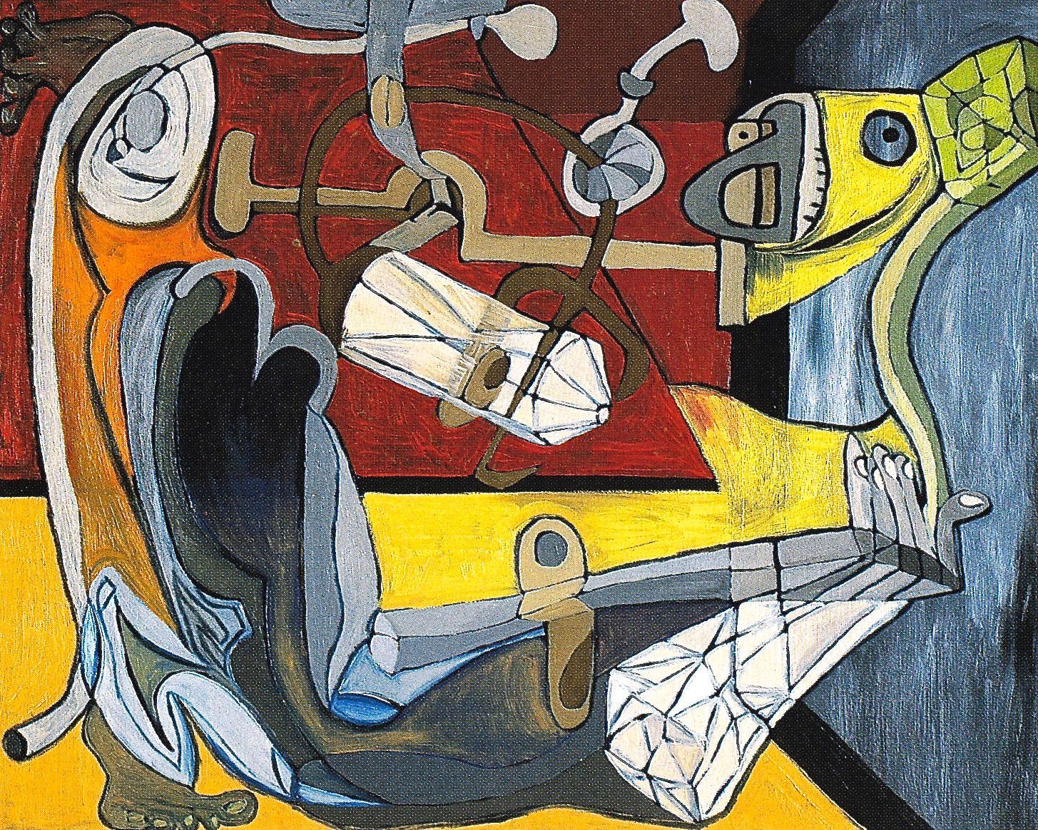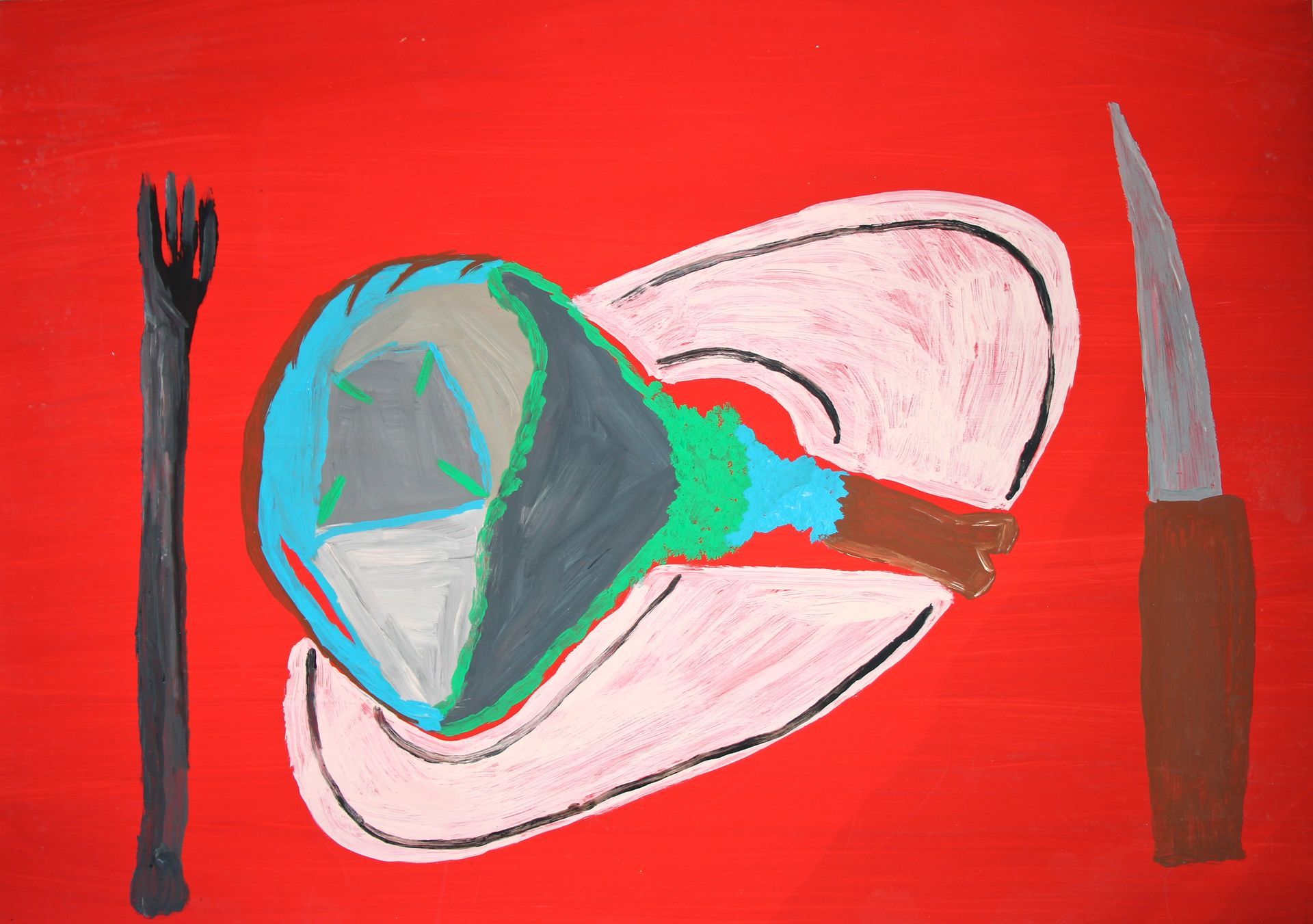 HauenSchauenWürsteKauen, 1980, Lackfarbe auf Leinwand 80x100cm