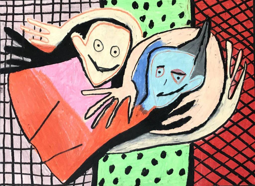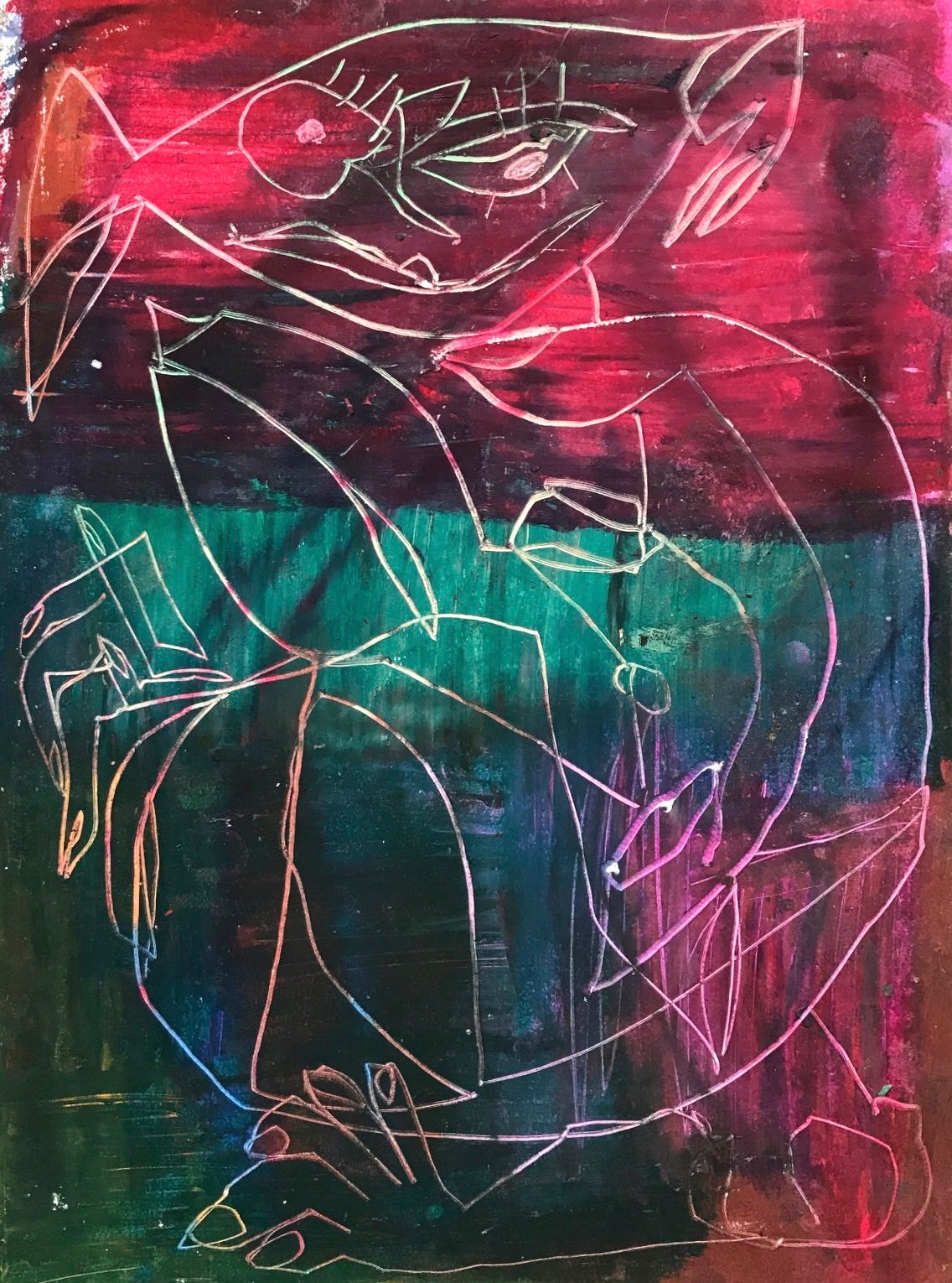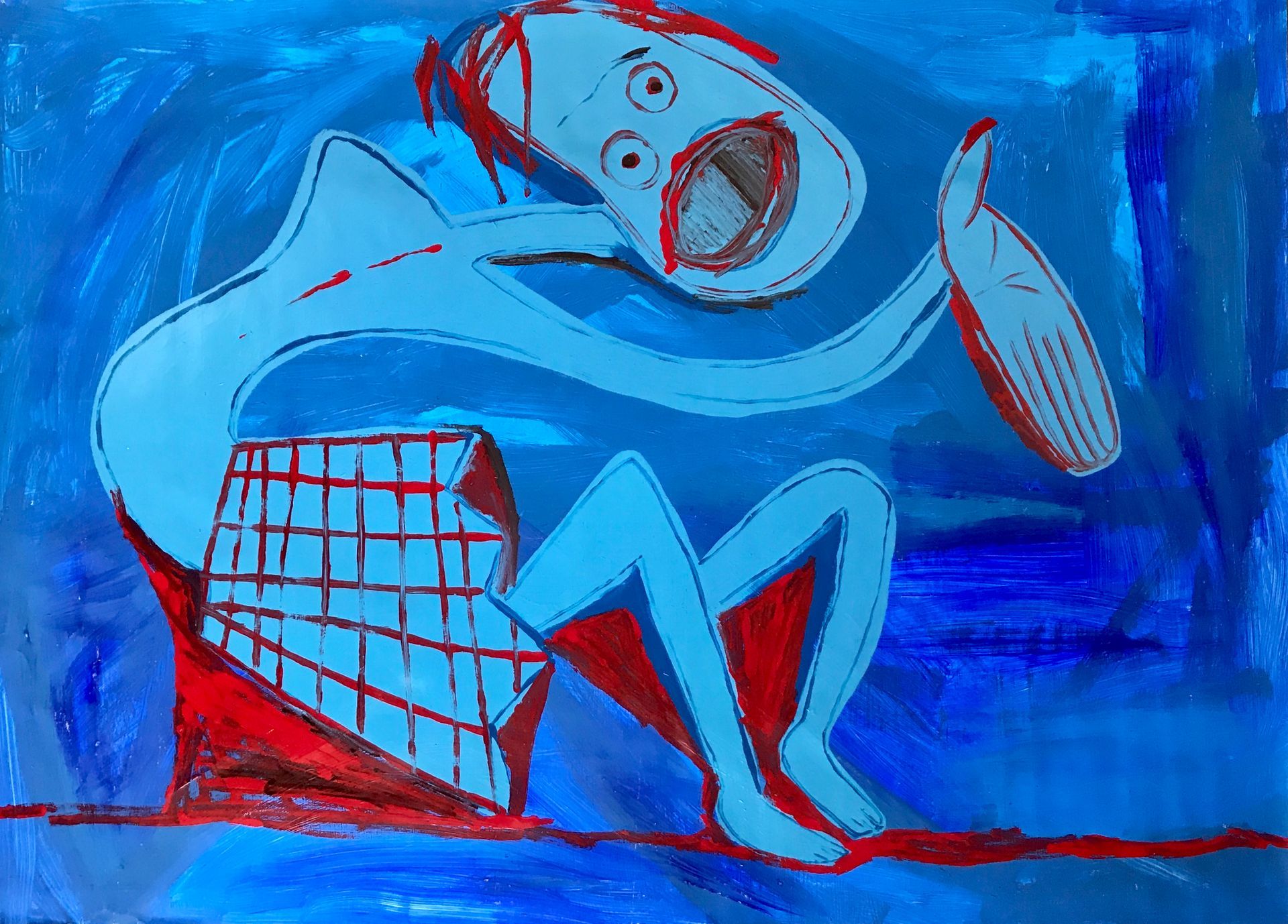 HauenSchauenWürsteKauen, 1980, Lackfarbe auf Leinwand 80x100cm