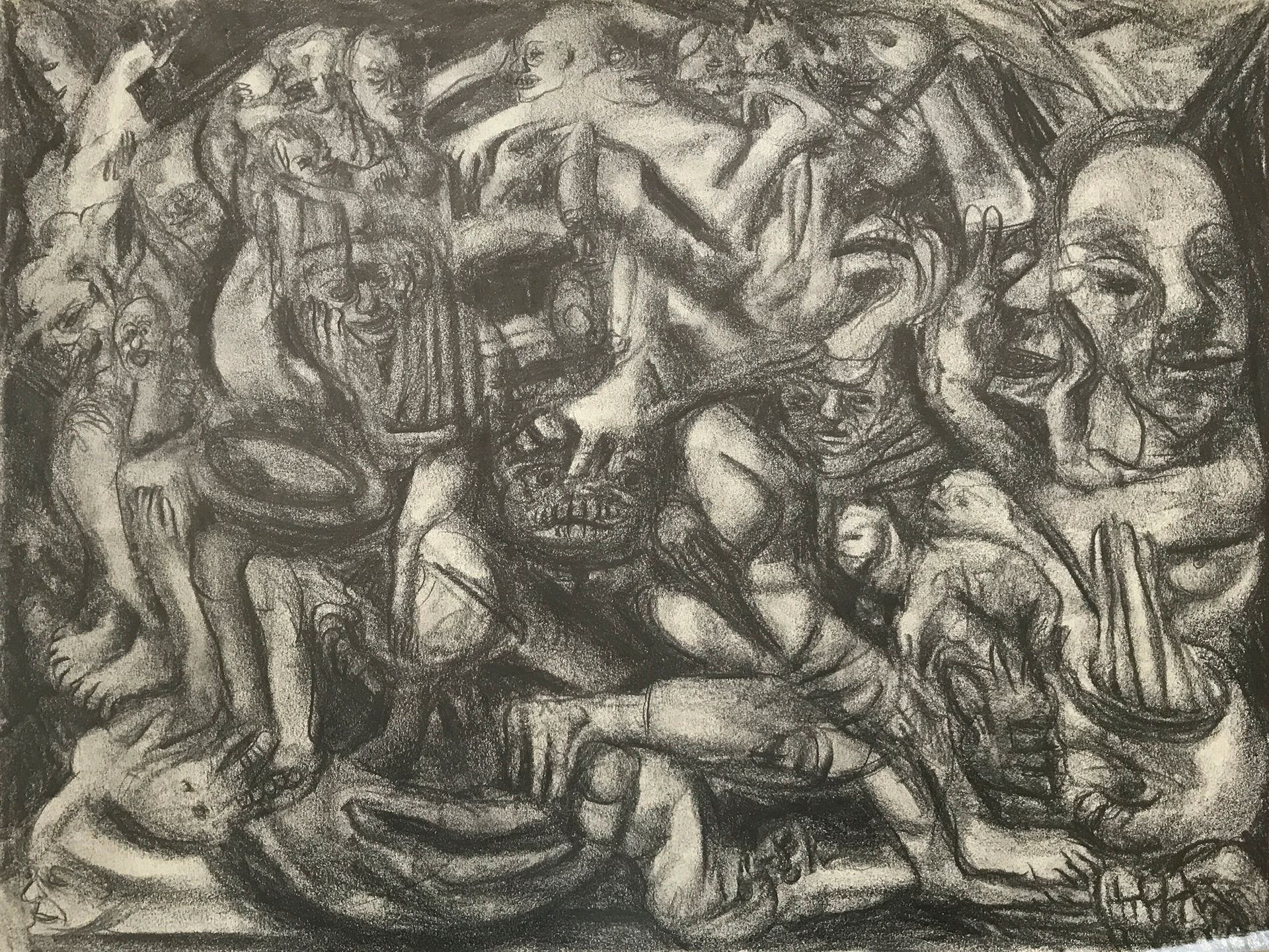 Strandleben, 1981, Lackfarbe auf Packpapier, 150x350cm